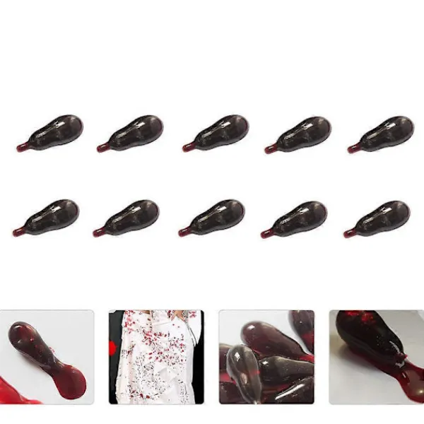 Vill du att dina helgdagar och festivaler ska bli mer intressanta? Vill du imponera på dina vänner eller klasskamrater på fritiden? Denna falska blodpille kommer att uppnå alla dina mål. Tveka inte och välj en för Halloween eller andra fester. Funktioner – Färg: Röd – Material: Plast, Vätska – Storlek: Ca. 2,50 x 1,00 x 1,00 cm; 0,98 x 0,39 x 0,39 tum – Vattenpigmentglycerin och andra material, säkert, men rekommenderas inte att sväljas. – För att använda den falska blodkapslen, bita sedan ner, en hemsk scen kommer att dyka upp. – Ett knepigt verktyg när Halloween närmar sig, skynda dig och välj en. – Blodkapslarna är till för att skapa en realistisk teater scen eller bara för att skoja med någon. – Användning av de falska blodkapslarna är lämplig för vuxna. Förpackningslista: 10 x Falska Blodpiller