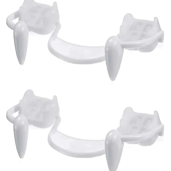Infällbara VampyrtänderDu kan kontrollera utseendet och försvinnandet av huggtänder med tungan; låt dem sträcka sig när du vill spela vampyr och dra tillbaka dina hängslen när du inte behöver dem, precis som de riktiga vampyrtänderna.