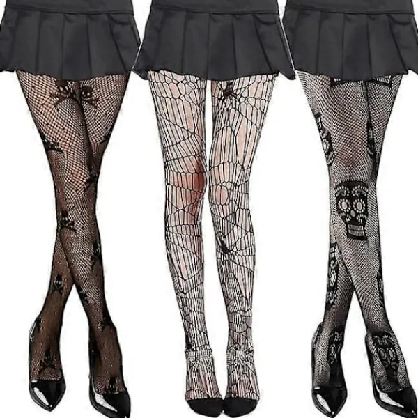 3 par fisknätstights Svarta Halloween, nät tights dödskalle spindlar, spindelnät tights, skelett tights kvinnor, Halloween kostym tillbehör De dödas dag Festival Karneval strumpor