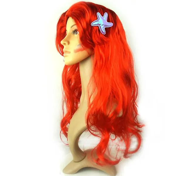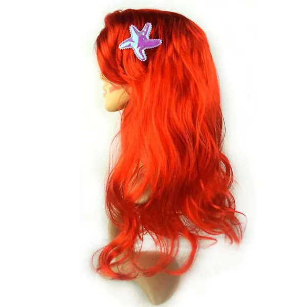 Prinsessan Sjöjungfru Peruk Coraline Barn Flickor Röd Lång Lockig Halloween Fest Peruk med Sjöstjärna Hårklämmor