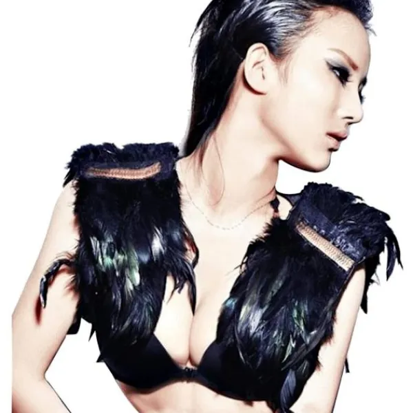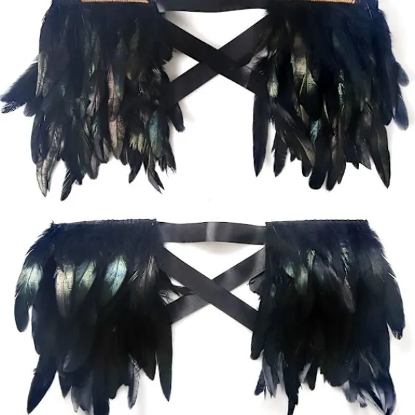 【Fjäderkostym】 Den svarta vingaxeln är gjord av riktiga fjädrar och säkerställer en dramatisk look.