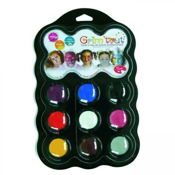 Grim’Tout Zoo Parade sminkpalett är ett komplett sminkset för barn. Den innehåller 9 färger, en kvalitetsborste, en sminksvamp och ett 12-sidigt sminkhäfte. Det genomskinliga skalet och den ergonomiska förpackningen gör den till en praktisk och lättanvänd produkt. Denna pall är CE-standardiserad och pegboardbar.