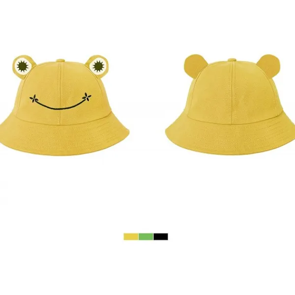 【Chic Bucket Hat】Unik och stilren stil, grodformen med öron design ger mer slumpmässighet till din outfit, och den har en bra mörkläggningseffekt.