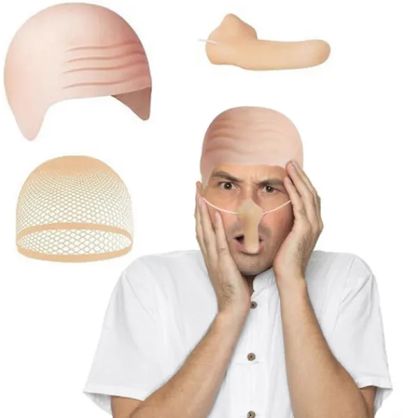Med en rolig flintskallig mössa och lång näsa blir du festens mittpunkt på halloweenfesten.