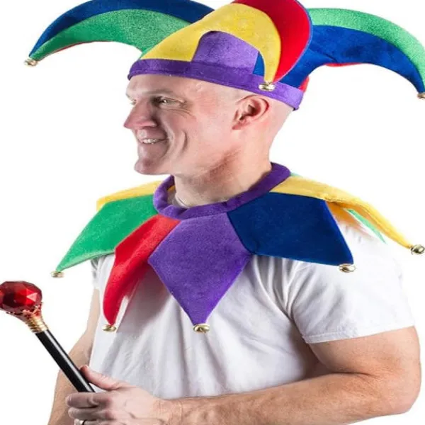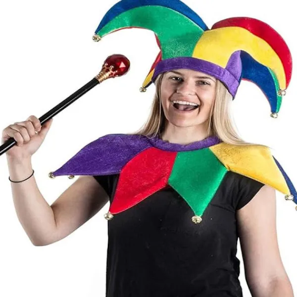 Detta bedårande set innehåller en gycklarstav, en gycklarkrage och en gycklarhatt.
