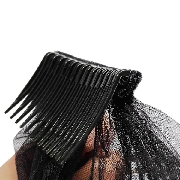 STORLEK: Vår dubbellagerslöja är cirka 60-80 cm lång, precis rätt längd, visa din elegans. En kam på toppen av slöjan, brudar kan fästa kammen i håret, bära denna svarta slöja på festen, du kommer att kontrollera stämningen på festen och göra dig själv till festens centrum.