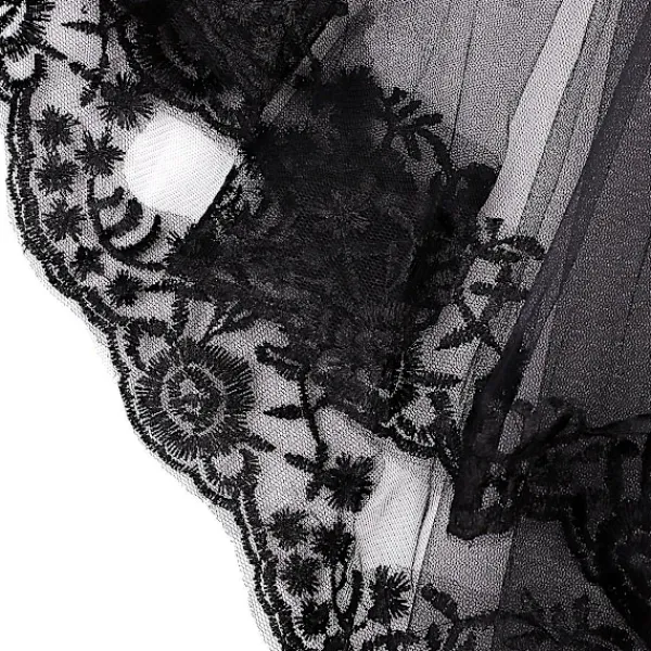 MATERIAL: En brudslöja i nät dekorerad med blommigt broderi. Elegant och sexig. Den svarta slöjan är perfekt för karnevalstillbehör, cosplay, Halloween-häxtillbehör, etc., och är det perfekta tillbehöret till din fest.