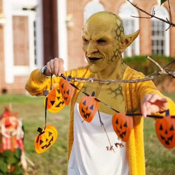 Högkvalitativt Material: Tillverkad av miljövänlig latex, det kan finnas en liten latexlukt. Innan användning, torka av latexmasken med en fuktig trasa.