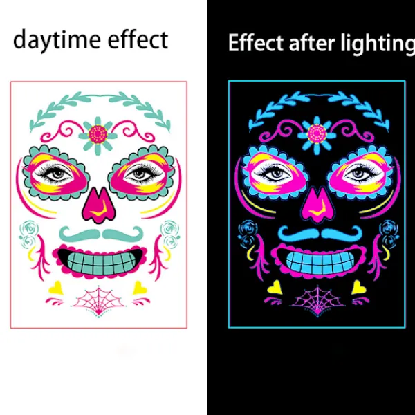 Överdimensionerad och iögonfallande: Den 150 mm × 210 mm stora klistermärkesidan har en tillräckligt stor mönsterstorlek för att skapa en stark visuell effekt oavsett om den appliceras på ansikte, armar, nacke eller som ett klädtillbehör, vilket gör dig till festens fokus.