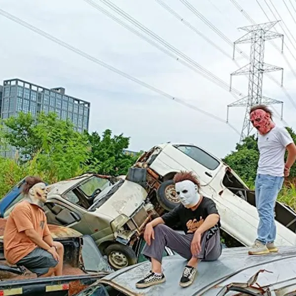 Material: Tillverkad av miljövänligt och giftfritt material. Lyxig overhead-mask för vuxna. Mike Myers-masken kan se genom ögonhålen och andas genom näsborrarna;