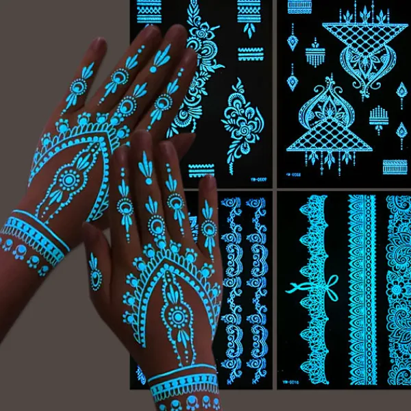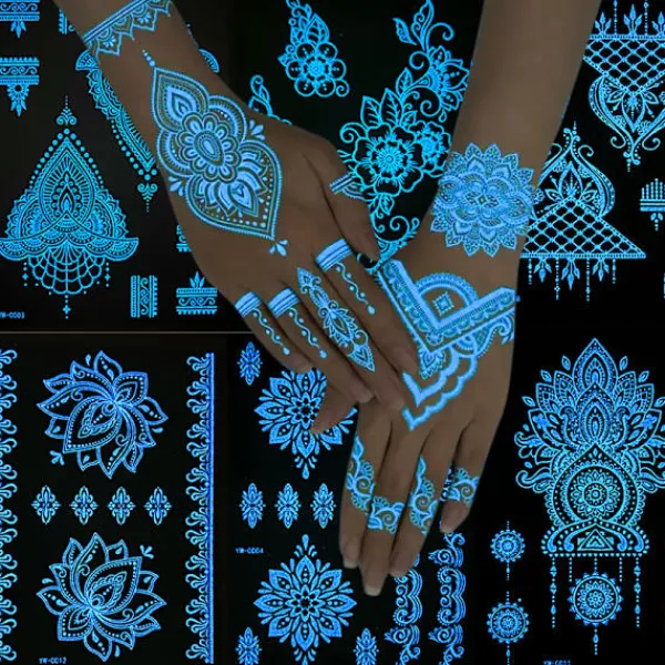 𝐍𝐨𝐭𝐞: Dessa tatueringsdekaler visar vitt under dagen, och för att uppnå en självlysande effekt är det nödvändigt att belysa ljuset. Reaktiens ljusstyrka kommer också att variera under olika ljusförhållanden.