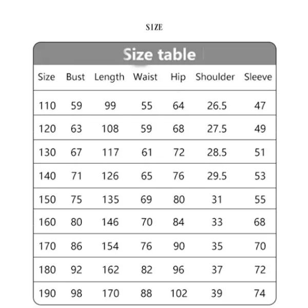 | Size | 110cm, 120cm, 130cm, 140cm, 150cm, 160cm, 170CM, 180CM |