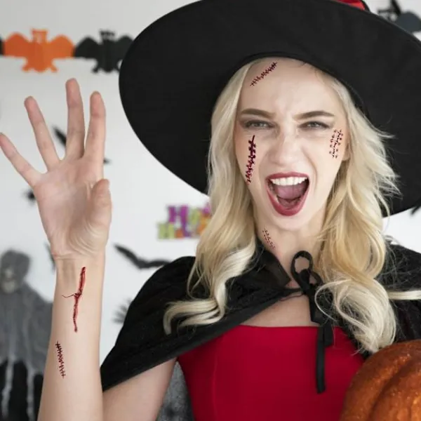 How to Use— Just peel and press down on your body part, then wet it thoroughly and wait 20-30 seconds, peel off paper backing, then a perfect Halloween is done.