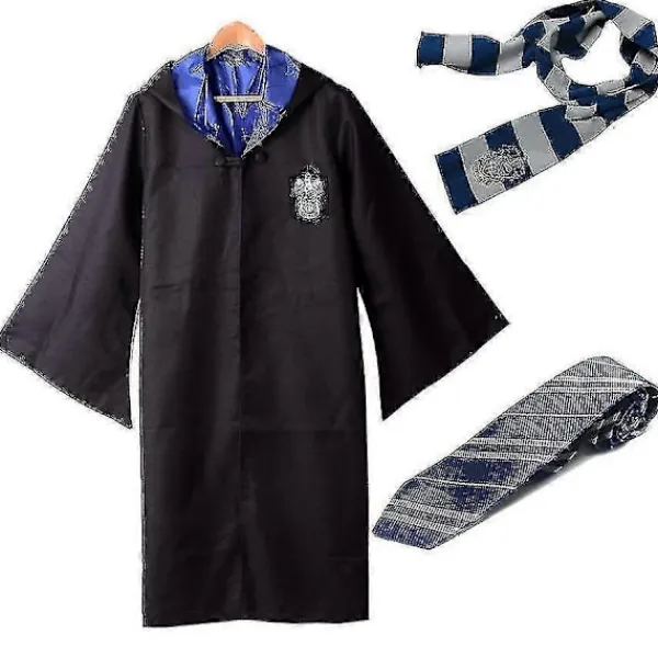 Beskrivning: Kappa material: uniform tyg utsida, polyester insida. Förpackning: 1 kappa + 1 slips + 1 halsduk. Färger: Slytherin, Ravenclaw, Hufflepuff, Gryffindor
