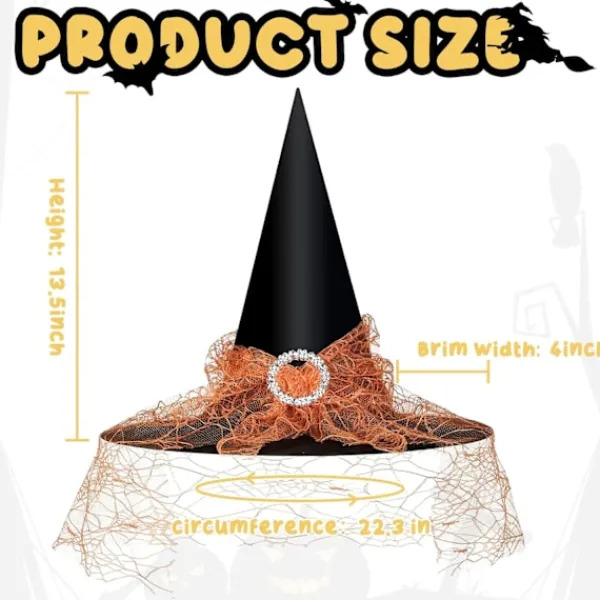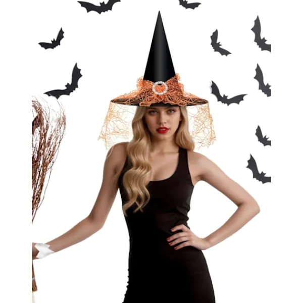 Användbart kostymtillbehör: Oavsett om du vill ha ett charmigt häxutseende eller ett spöklikt häxutseende, kommer dessa hattar garanterat att dra till sig uppmärksamhet och är det perfekta tillbehöret för att komplettera din kostym. Den klassiska designen och de mångsidiga färgvalen gör dem lämpliga för en mängd olika kostymer, vilket gör att du kan sticka ut på vilken fest som helst.