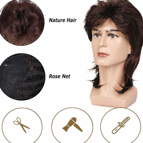 Perukmaterial: Högkvalitativ värmebeständig syntetfiberperuk, perfekt för långvarig användning utan hudallergier.