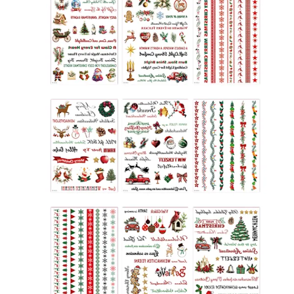 Mångsidig Användning: Dessa dekaler är inte bara för huden! De kan användas för att dekorera ljus, fönster eller vilken slät yta som helst, vilket ger en touch av julmagi var du än väljer. Deras mångsidighet gör dem perfekta för julfester, festliga sammankomster eller helt enkelt för att lägga till en personlig touch till din heminredning. Oavsett om du vill smycka dina ljus eller skapa en festlig fönsterutställning, är dessa dekaler den perfekta lösningen.