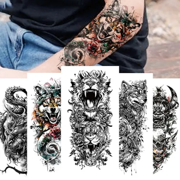 Realistiskt utseende: Denna tatueringsärm är tillverkad med högkvalitativt bläck och detaljerade detaljer och efterliknar utseendet på äkta bläck, vilket ger ett övertygande och iögonfallande utseende.