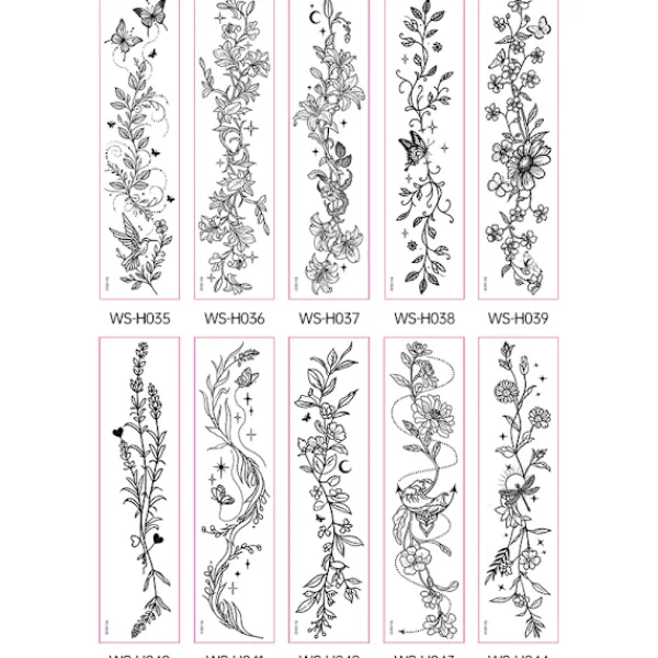 Mångsidiga designer: Detta set innehåller 10 unika vildblommönster, som erbjuder en mängd olika stilar för att passa alla tillfällen. Från delikata blommönster till djärva botaniska arrangemang, dessa tatueringar kan appliceras på dina armar, nyckelben, bröst eller var du än önskar. Experimentera med olika placeringar och kombinationer för att skapa din egen personliga tatueringskonst. Varje ark har intrikata detaljer och realistisk skuggning för ett verkligt autentiskt utseende.