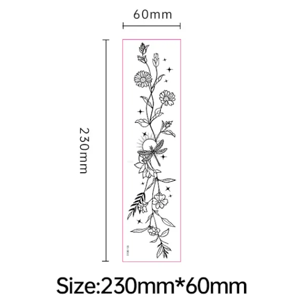 Enkel applicering: Dessa temporära tatueringar är otroligt enkla att applicera. Dra bara av skyddsfilmen, placera tatueringen på din hud, blöt den ordentligt med en svamp eller trasa och vänta i 20-30 sekunder. De detaljerade blommönstren överförs smidigt till din hud och skapar en realistisk tatueringseffekt utan åtagande eller smärta från permanent bläck. Perfekt för fester, evenemang eller bara för att lägga till en touch av stil till din vardagslook.