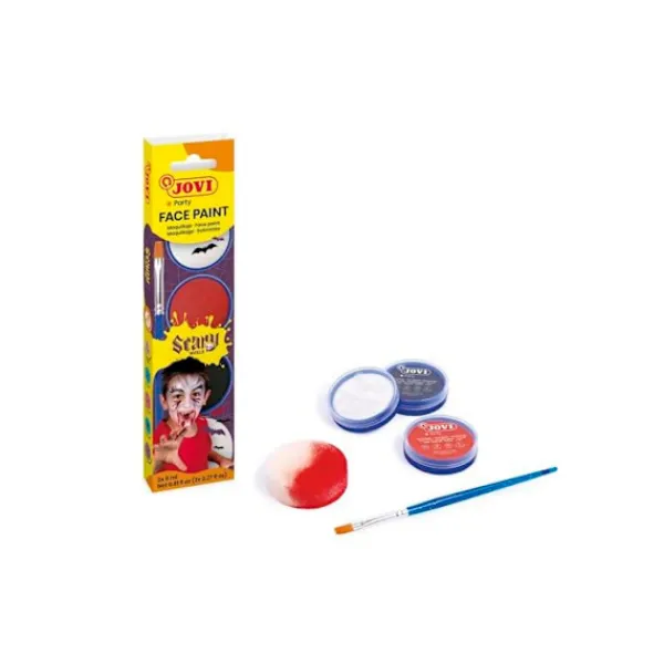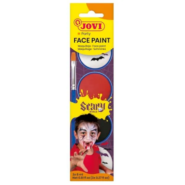 Jovi Scary barnsmink är utformat för pojkar och flickor från 3 år. Detta kit innehåller tre flaskor med 8 ml krämigt smink, tillgängligt i klara färger: vit, röd och svart. Dessa färger kan blandas för att skapa unika effekter. Produkten levereras med en sminksvamp och en platt borste, vilket gör appliceringen lättare. Texturen är behaglig och jämn, vilket garanterar hög täckförmåga. Dermatologiskt testad, är detta smink icke-toxisk och tillverkad i Spanien. Det är fritt från parabener och de vanligaste allergenerna, vilket gör det säkert för alla hudtyper. Flaskformatet möjliggör enkel applicering utan att vatten behövs, och dess oljebaserade formula förhindrar att produkten torkar ut. Idealisk för barnfester, födelsedagar, karnevaler, Halloween och andra festliga evenemang, kan detta smink enkelt rengöras med en fuktig trasa eller med tvål och vatten. Produktens dimensioner är 20 mm i bredd, 58 mm i längd och 235 mm i höjd, med en vikt av 0,08 kg. Observera att produkten innehåller små delar och bör användas under övervakning av en vuxen. Ej lämplig för barn under 36 månader. Spara tillverkarens uppgifter för säker användning.