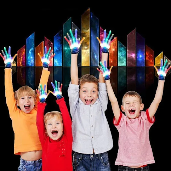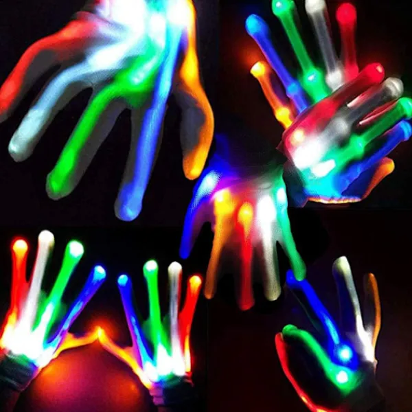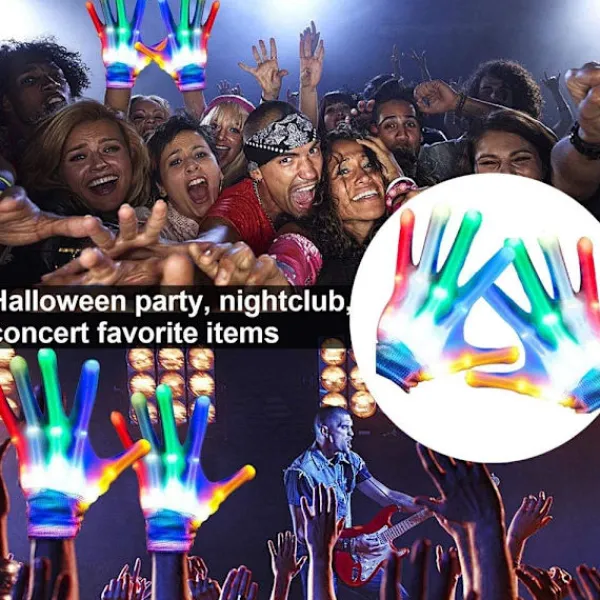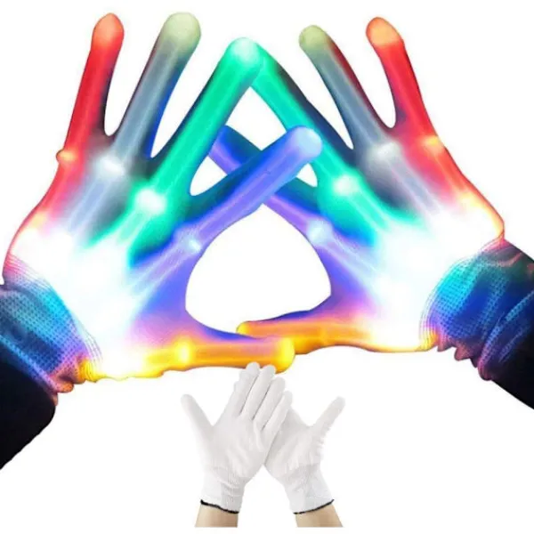 Lätt att använda: Ta bara bort den vita isoleringsskivan för att aktivera LED-lampan på handsken före användning. Du kan trycka lätt på handskens strömbrytare så blinkar den under de färgglada lamporna.