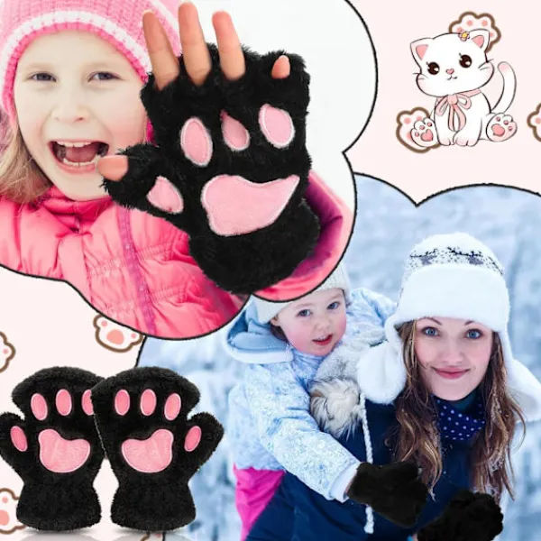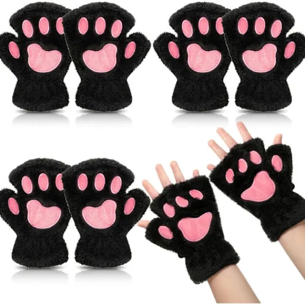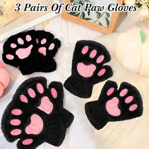 Riklig mängd: vårt paket innehåller 3 par söta kattpåtassar fingerlösa vantar i 3 olika färger, tillräcklig mängd och olika färger kan möta dina dagliga behov och ersättning, vilket kan hålla dina händer varma på vintern
