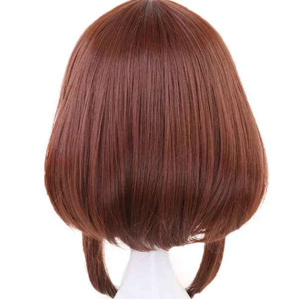 Perukdesign: Kort brun bob peruk med lugg, anime cosplay peruk för fest.Fördel: Lätt att sätta på och ta av, sparar mer tid.Material: Hög temperaturvärmebeständiga syntetiska fibrerJusterbar mössstorlek, passar de flesta vuxna eller barn. Handtvätt och användbar med alla stylingprodukter som geler, hårsprayer eller spiklim.Perfekt för Halloween, konserter, temafester, bröllop, dejting och alla andra tillfällen