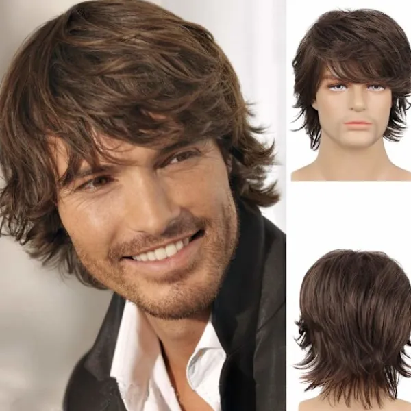 Funktioner. Snygg brun peruk med naturliga, värmetåliga fibrer som gör att du omedelbart sticker ut i mängden eller på en fest. Du kan klippa eller trimma den till din favoritfrisyr.