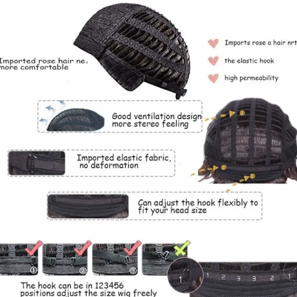 Hårdvara. Våra korta peruker är gjorda av högkvalitativ värmetålig syntetfiber, som är mer hållbar och mjuk att ta på, precis som riktigt hår, perfekt för långvarig användning.