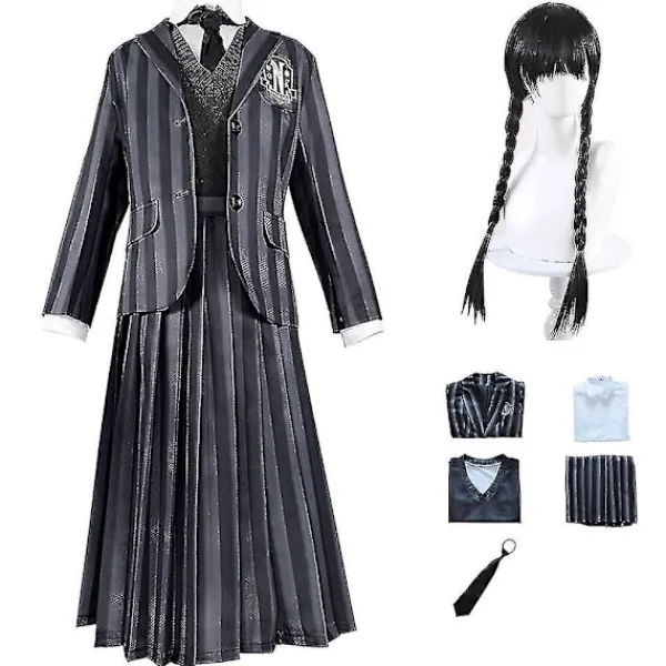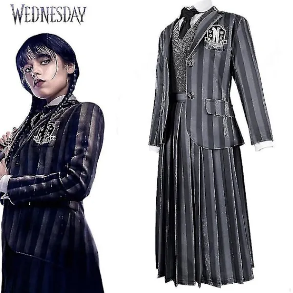 Vuxen Kvinna Addams Klänning Addams Cosplay Kostym Wednesday Addams Nevermore Academy Skoluniform Outfit