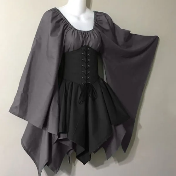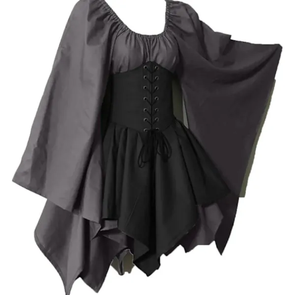 Kvinnors halloweenkostymer viktoriansk skalleklänning Plus Size Vintage medeltida maxiklänning med slips Bell ärmar Dam medeltida klänning renässans Vintage cosplay Halloween maxiklänning dam öl Babe Oktoberfest dräkt kvinnors medeltida underkjol Farm Tops Irish Bottoms Plus Size Halloween cap med knytband långärmad vinxiklänning renaissance maxiklänning renaissance kostym klänning klänning sexig högtidlig klänning semester fest cocktail klänning bröllop gäst klänning utekväll kostym klänning