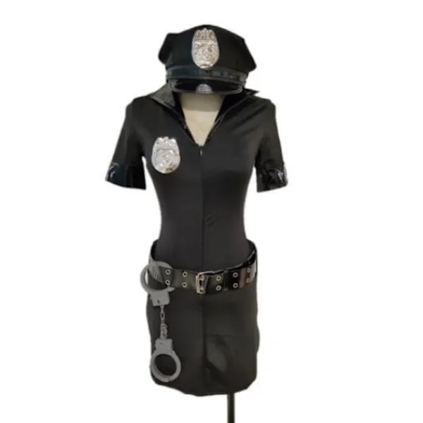 Kvinnors polis kostym Halloween polis uniform outfit, kostym klänning ihop med hatt, märke, bälte, handbojor.