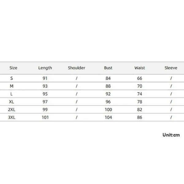 Storlek 2XL, Längd: 99cm, Byst: 100cm, Midja: 82cm