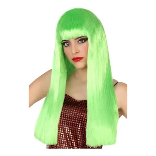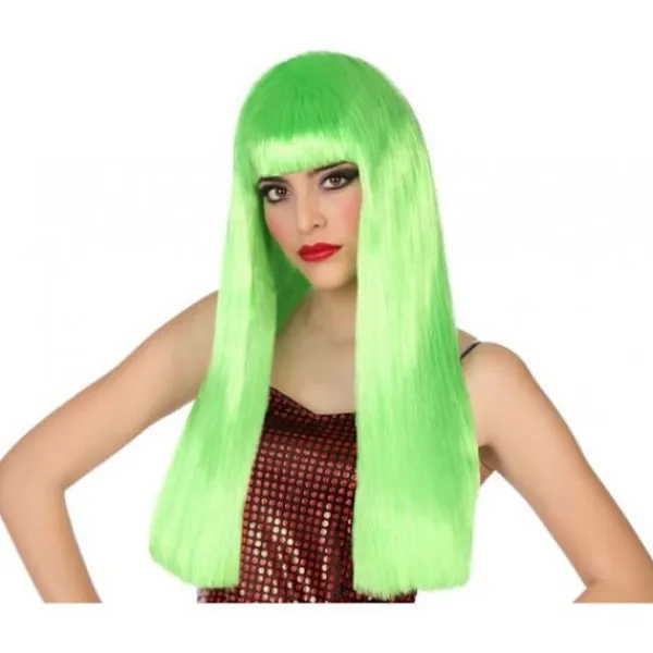 Kostymperuk Accessoar Lång Grön med Lugg Dam Denna peruk med långt hår och lugg i färgen GRÖN FLUO kommer att komplettera din kostym på en fest, en show eller en karneval. Förpackningens innehåll: 1 peruk med hår i färgen Grön Fluo som är 60 cm lång, med lugg.