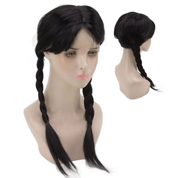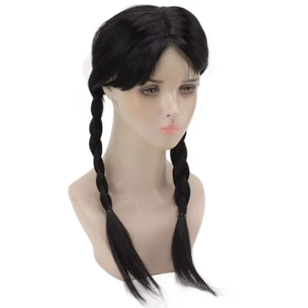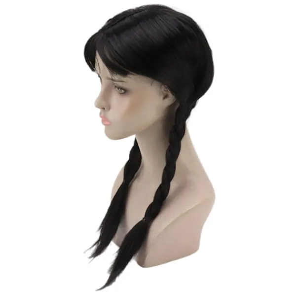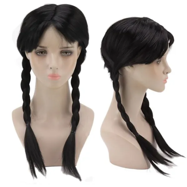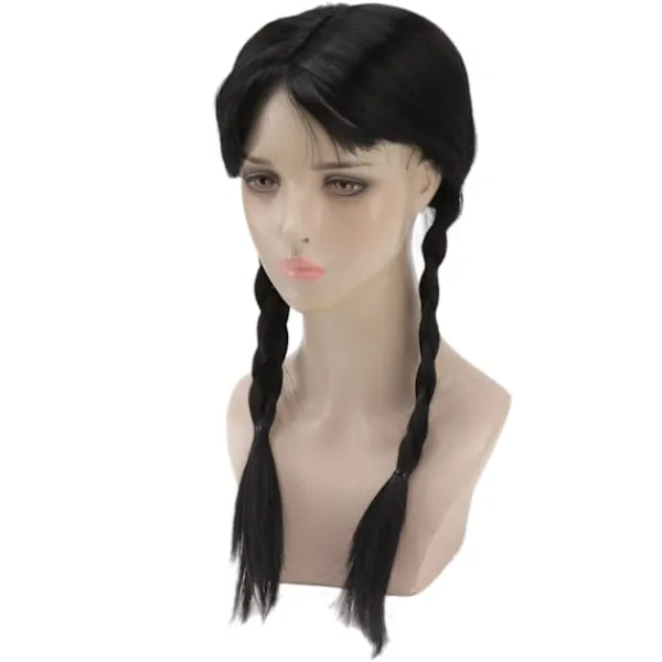 1、Passar de flesta huvudstorlekar: Vår peruk är utrustad med en perukmössa, som snyggt kan ordna ditt hår i botten. Den är lämplig för barn, tonåringar och vuxna. Denna svarta vävda peruk hjälper dig och ditt barn att behålla sin individualitet hela dagen. 2、Multifunktionell och återanvändbar: Denna svarta flätade peruk har ett avtagbart rött band på sin fläta. Du kan lägga till dina egna tillbehör för att få det utseende du vill ha, som landskap eller gotiska tjejer. 3、Lägg till Mysterium och Olycksbådande: Komplettera ditt eller ditt barns utseende med den ikoniska Wednesday Addams-peruken. Lägg till mystik och olycksbådande till din Halloween-outfit. Spika din karaktärs kostym från topp till tå. 4、Svart Flätad Peruk med Hästsvans: Denna svarta flätade peruk är utrustad med 2 snygga långa flätor och glänsande svart hår, som ser ut som äkta hår. 5、Tillämpliga scener: Svart flätad peruk med hästsvans är lämplig för rollspel, Halloween eller kostymfester, vilket ger dig en fantastisk bärupplevelse.