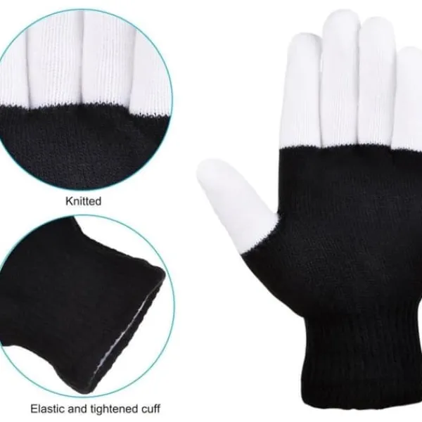 Lys upp natten på ett ögonblick. Skapa din egen ljusshow med bekväma, elastiska LED-handskar som växlar färg och mönster med en knapptryckning. Perfekt för Halloween, julfirande, klubbar, dansshower, skolfester och maskerader.
