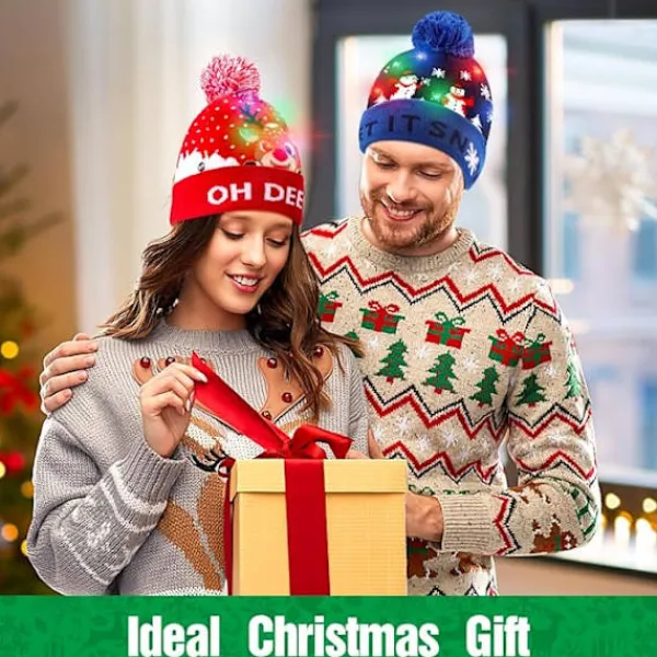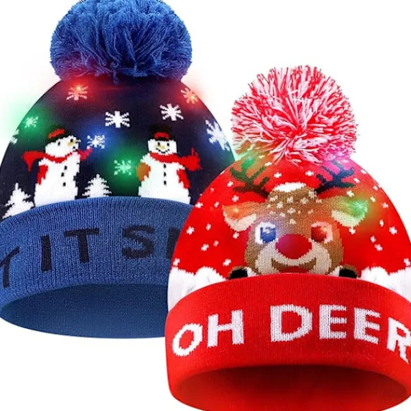 【Universal storlek】- Vår blinkande julmössa har inte bara söta mönster och LED-lampor, utan också hög elasticitet, lämplig för de flesta pojkar, flickor, män och kvinnor i olika huvudstorlekar.