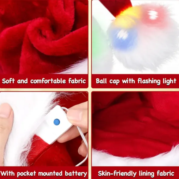 🎅Ljusupplyst Julkeps: Våra julkepsar har inbyggda LED-lampor med 4 olika färger, 3 ljuslägen, inklusive konstant ljusläge, blinkande läge och tonande läge, utrustad med batteridrift, med batterifacket säkert utformat för att inte falla av, och våra kepsbollar lyser med julkepsar. Detta kommer att skilja oss åt och få dig att sticka ut på jul festen.