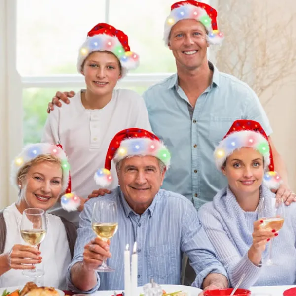 🎅Unika Julfestdekorationer: Denna glittrande tomteluva kommer att vara i centrum för uppmärksamheten när du är på din julfest, och de kommer att bli förvånade över att din tomteluva och huvuden är glittrande, vilket ger extra kul till dig och sticker ut på julfesten.