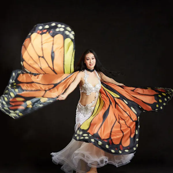 Ta din festivallook till himmelska nya höjder av förtrollande skönhet i Butterfly Wing Halter Cape med ett livfullt fjärilsvingmönster, halterneckband, armband och vingförlängningsstänger. För en verkligt förtrollande look skiftar och flyter de livfulla vingarna med varje rörelse i den briljanta fjärilsdesignen. Håll denna högtflygande look på plats med det stretchiga halterneckbandet, armbanden och vingstödstängerna. Storlek: Barn: 260cm*130cm; Vuxen: 300cm*145cm. Oavsett hur du stylar dessa kostymvingar är de skimrande vingarna perfekta för Halloween, Pride, DIY-temakostymer, musikfestivaler, teaterrekvisita eller danskläder._ruyi