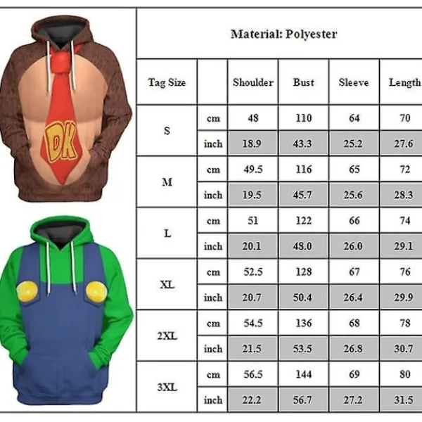 Mario Luigi Peach Bowser Donkey Kong Kostym Vuxna Hoodies Unisex Tröjor Super Brothers Film Huvtröja Cosplay Kostymer