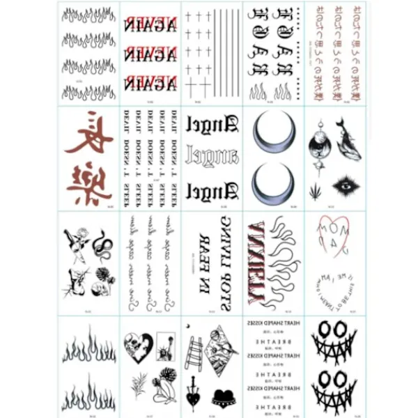 30-pack temporära tatueringar med blandade motiv och mönster. Perfekt för att prova på ett nytt utseende eller för att sticka ut extra mycket på exempelvis festivaler eller fester!
