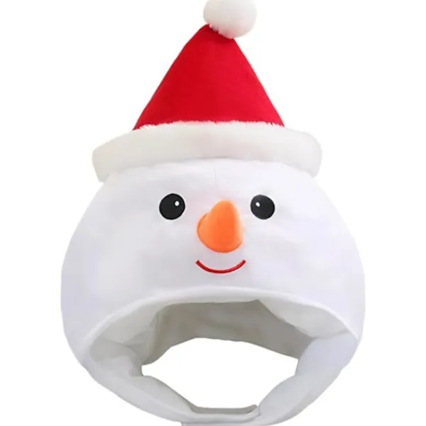 Lägg till en glad och festlig touch till dina julfiranden med denna plyschiga snögubbe-mössa. Med ett sött snögubbe-ansikte med en ljus orange näsa, svarta ögon och en leende mun, toppad med en klassisk röd tomtemössa med en vit pom-pom, är denna mössa