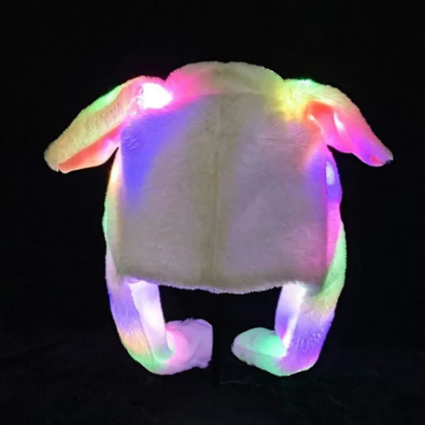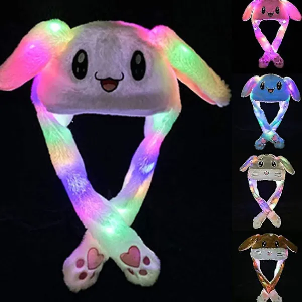- Ear Moving Hat Bunny LED GlowingLED Glowing Plush Moving Rabbit Hat Funny Glowing and Ear Moving Bunny Hat Cap for Women Girls, Cosplay Christmas Party Holiday Hat. It is not only a hat but also a plush toy. Can be used as an Easter / Halloween / Christmas / various holiday party hats. Perfect for winter, spring, autumn to wear, soft plush can keep your head too.