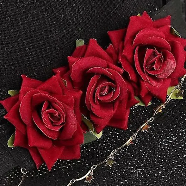 Stor rosett ros halloweenhäxhatt/halloween bredbrättad häxhatt är perfekt för att leka som ond häxa, elak trollkarl, spökbrud, svarta änkan, mörk jungfru; perfekt modern häxhatt för jul/bröllop/husfest/festivalfirande