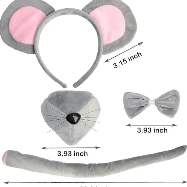 Denna roliga musdräktssats inkluderar: Musöron Hårband, Svans, Näsa och Fluga.