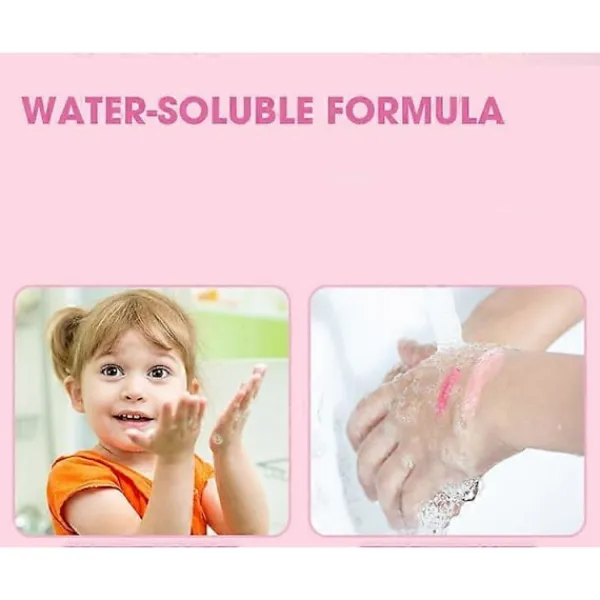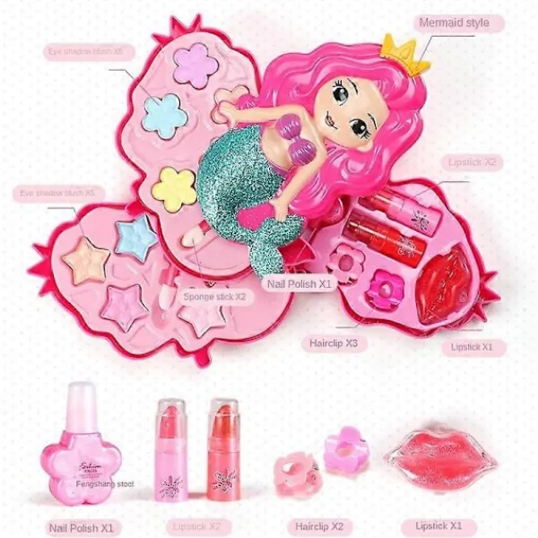 Detta barns kosmetiska set lämnar inga fläckar på kläder eller möbler och det kan tvättas.