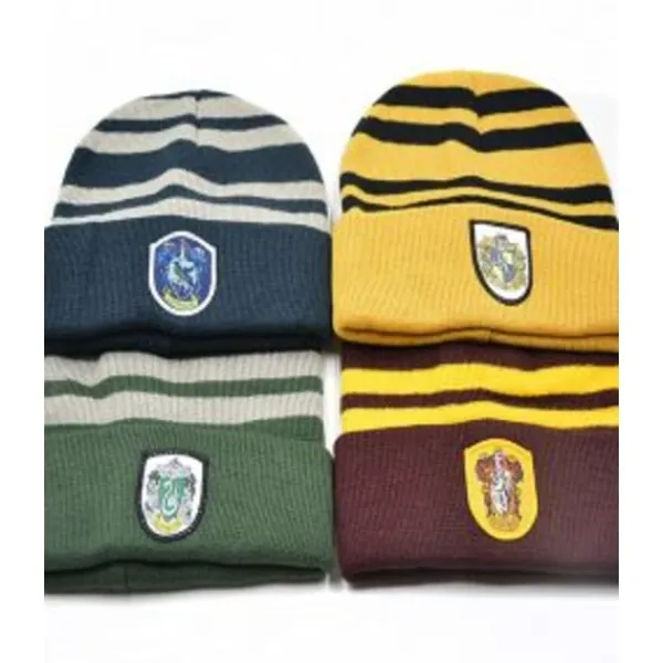 En skön och väldigt snygg stickad mössa med harry potter motiv från de 4 olika lagen. On size fits all storlek.