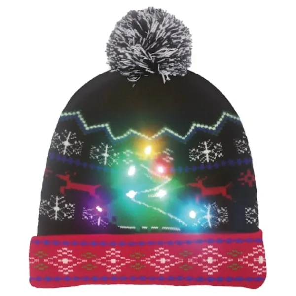 Mössan är unisize, så den passar de flesta huvuden, och de blinkande LED-lamporna drivs av ett smidigt batteri.